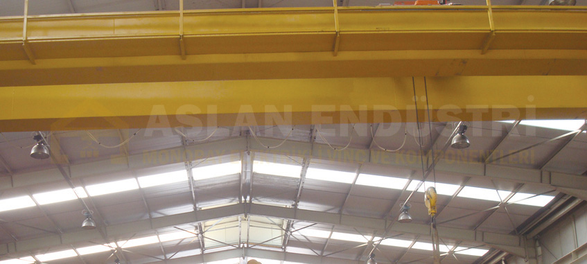 Double girder overhead crane lifting unit moves forward and backward on the main beam and also performs material lifting and transportation operations by moving the bridge forward and backward on the rail and operates in two different speed modes as an option. Generally, the used speed mode is normal speed mode and is suitable for many applications. It also works in slow mode for precise lifting and handling. Double girder gantry cranes; It is widely used in mechanical production workshops, product assembly line, warehouse and cargo areas. Control can be done by manual control or remote control.